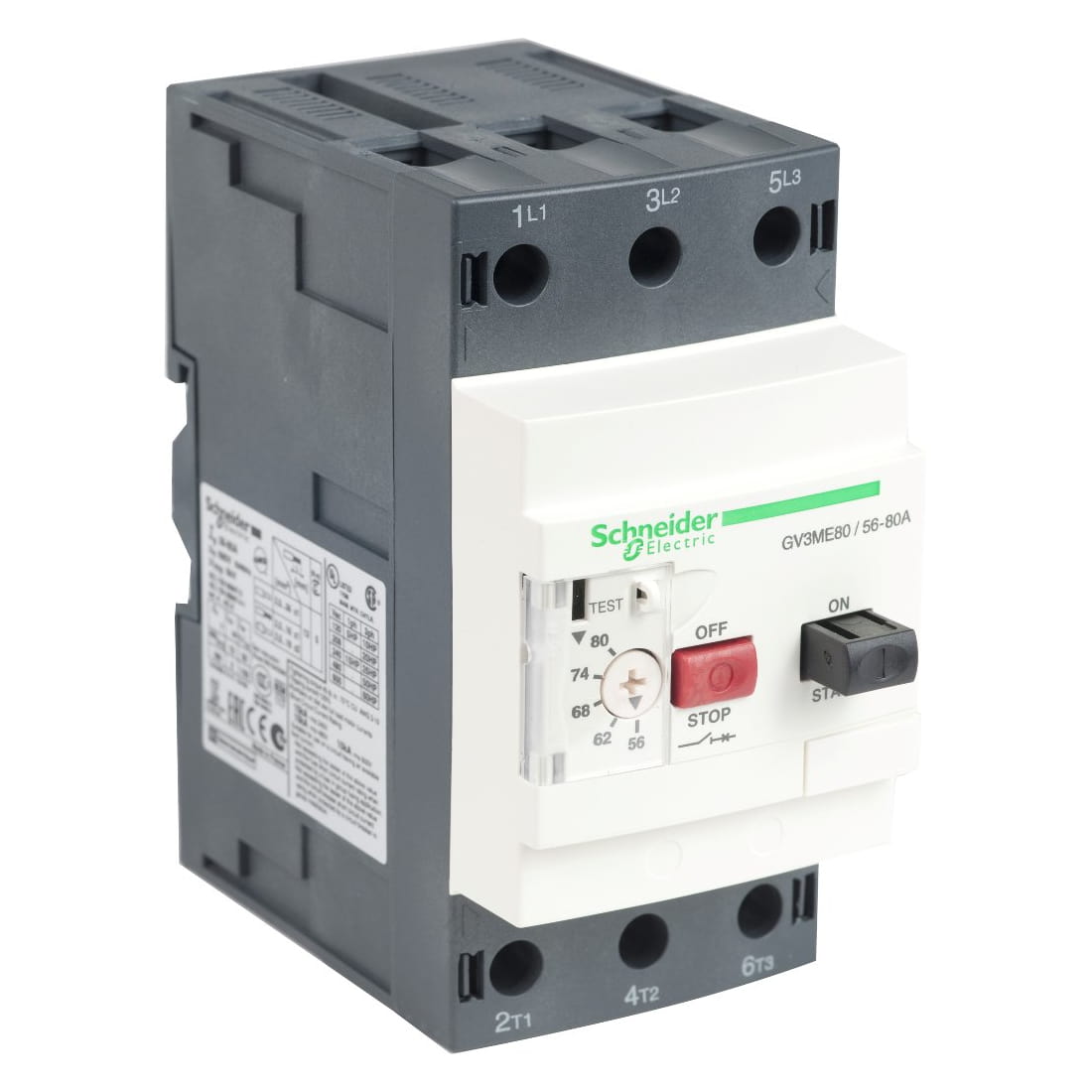 Трехфазный автоматический выключатель защиты двигателя серии GV3 с диапазоном регулировки теплового расцепителя 56–80 А предназначен для управления и защиты электродвигателей большой мощности от перегрузок, коротких замыканий и обрыва фаз. Устройство обладает повышенной отключающей способностью, оснащено надежным поворотным механизмом управления и гарантирует стабильную работу промышленного оборудования в условиях высоких пусковых нагрузок.