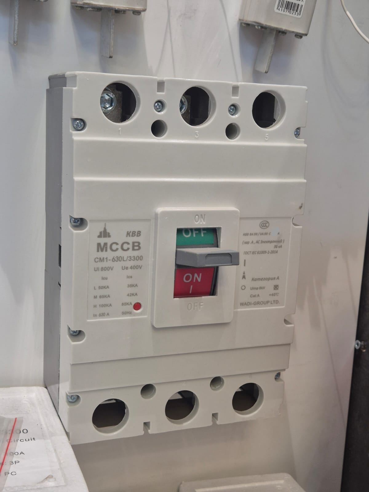 Трехфазный автоматический выключатель в литом корпусе KBB MCCB (серия CM1-630L) с номинальным током 500А предназначен для защиты мощных электрических сетей от перегрузок и коротких замыканий. Прибор характеризуется высокой отключающей способностью и надежностью, обеспечивая безопасную эксплуатацию и стабильное распределение энергии в главных распределительных щитах промышленных объектов и крупных коммерческих зданий.