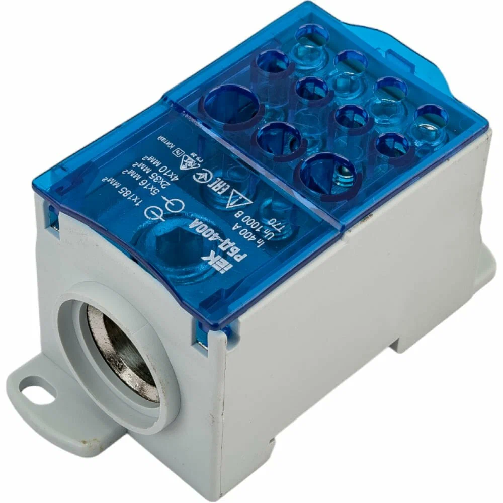 Распределительный блок FJ6G на 400 А представляет собой мощный модульный разветвитель силовых цепей, предназначенный для организации одного ввода и десяти независимых выходов в электрощитовом оборудовании. Модуль рассчитан на работу в сетях переменного тока напряжением до 690 В и позволяет компактно распределять электроэнергию без использования открытых шинных сборок. Корпус устройства выполнен из негорючего ударопрочного пластика, обеспечивающего степень защиты от случайного прикосновения к токоведущим частям, а внутренние зажимы изготовлены из высококачественной луженой меди для обеспечения надежного контакта и минимального переходного сопротивления. Блок легко монтируется на стандартную DIN-рейку или непосредственно на монтажную панель, значительно упрощая монтаж силовых линий и экономя пространство внутри распределительного щита.